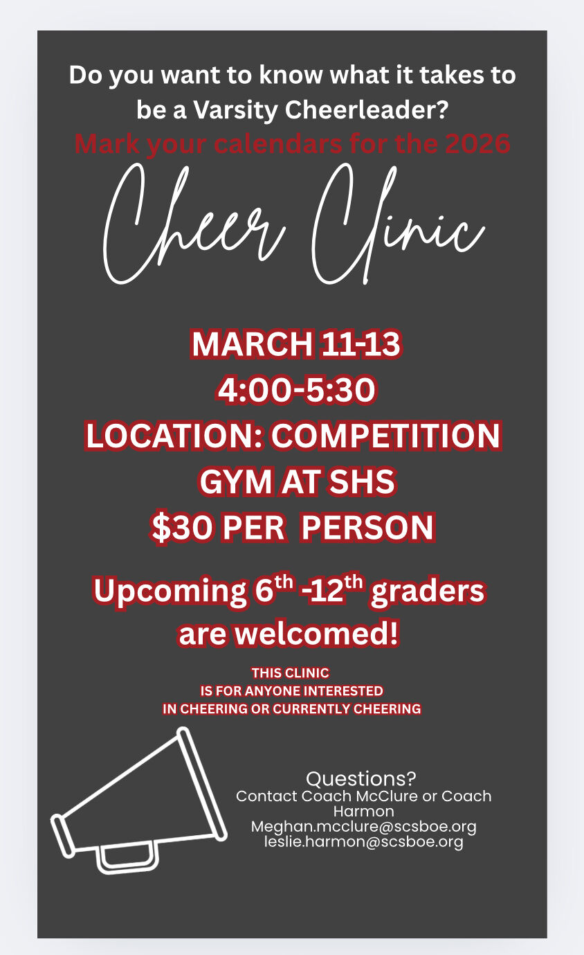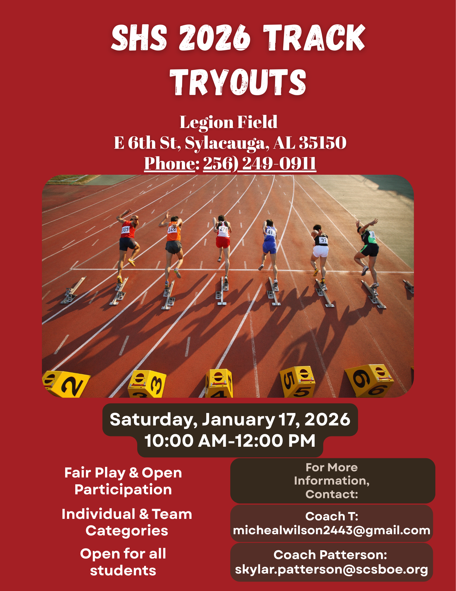Students in grades 6-12 are invited to tryout for SHS Track! Tryouts will be Saturday, January 17 from 10 am - 12 pm at Legion Field. Students must have a current physical on file or bring it to ...